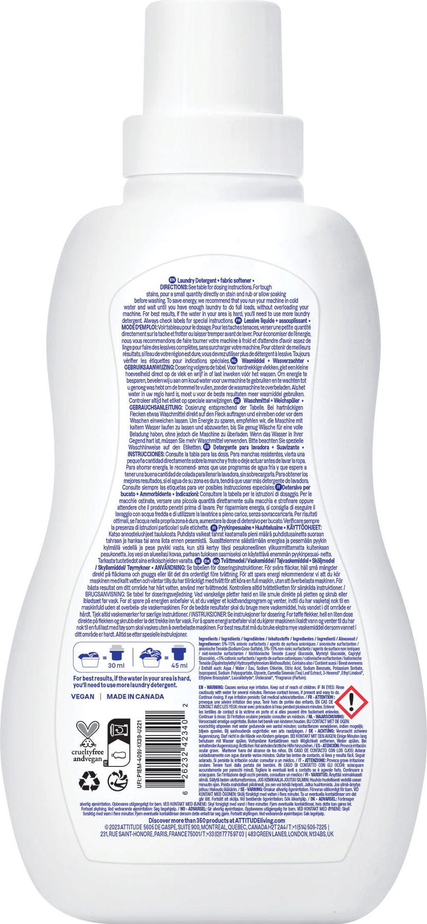 ATTITUDE Mountain Liquid Detergent & Softener, 1,05 l