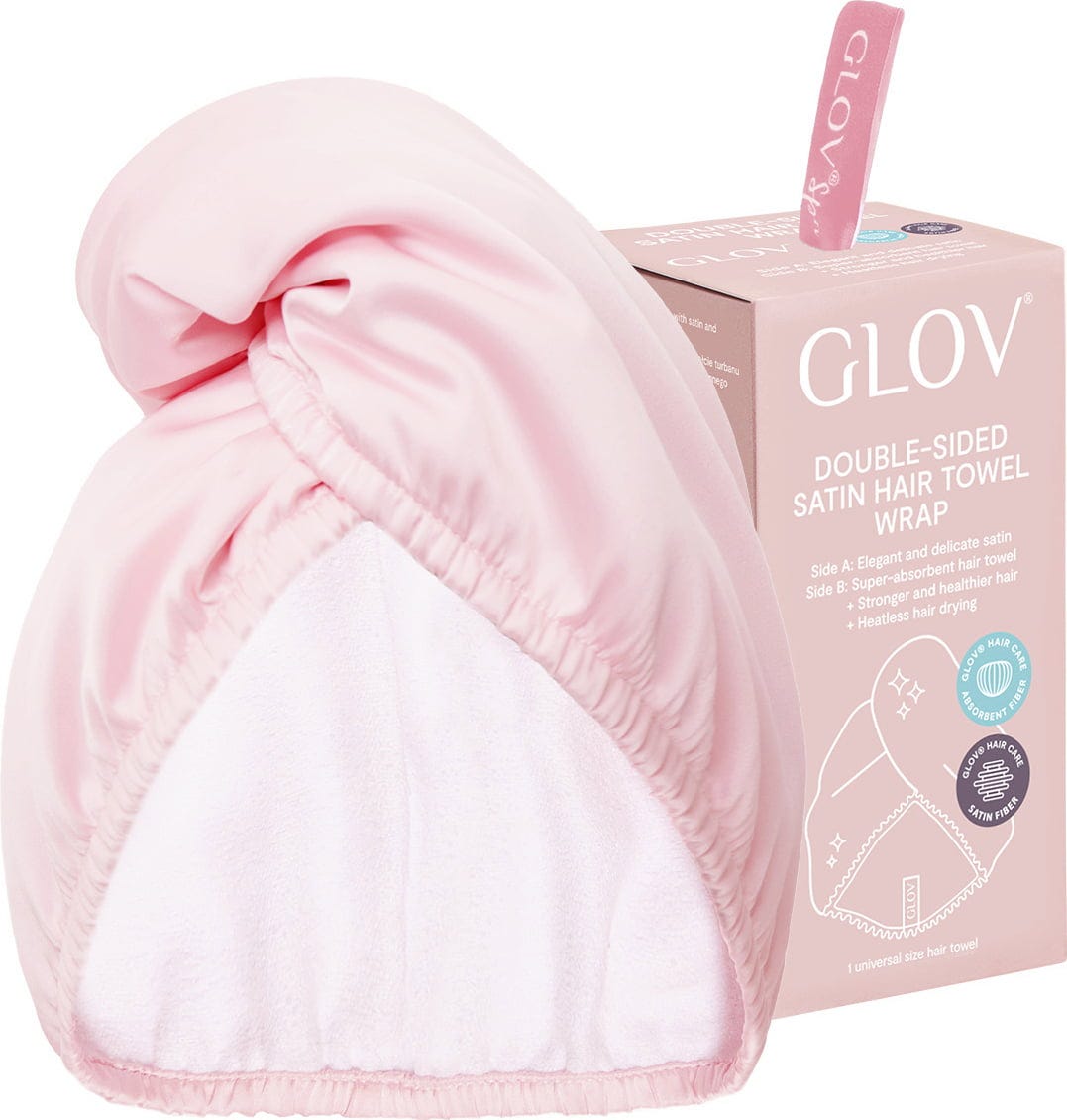 The reversible turban can be worn on both sides. The super-absorbent GLOV® microfibre absorbs moisture after washing the hair while the satin side can be worn outdoors. When the satin side is reversed, it prevents hair breakage, frizz and tangling. The hair wrap is ideal for curly hair or can be worn as a sophisticated accessory outdoors for a clean and polished look when the hair is wet.