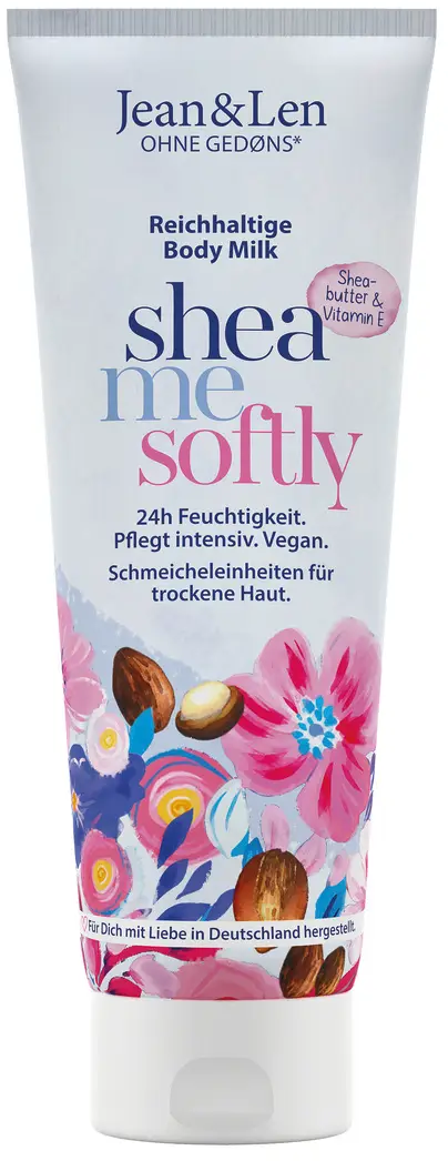 This Rich Shea Butter Body Milk by Jean&Len providesdry skin with wonderfully gentle. The moisturiser instantly leaves the skin feeling soft and comfortable for a long time. A subtle fragrance further enhances the wonderful moment of care.