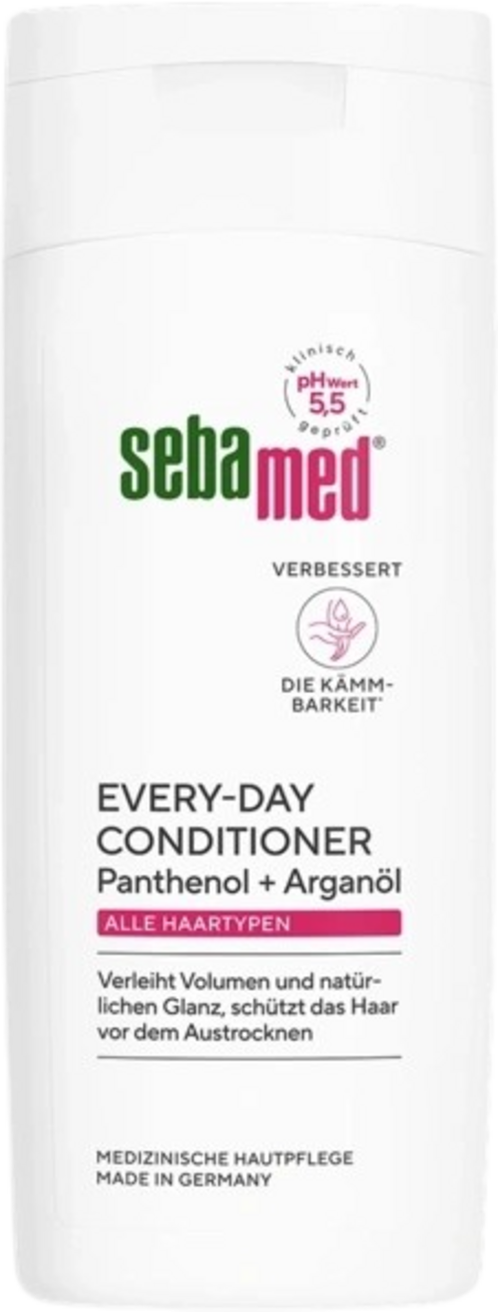 The silicone-free conditioner by sebamed cares for your hair with panthenol and argan oil. The pH value of 5.5 is gentle on the skin and supports the skin's natural protective layer.