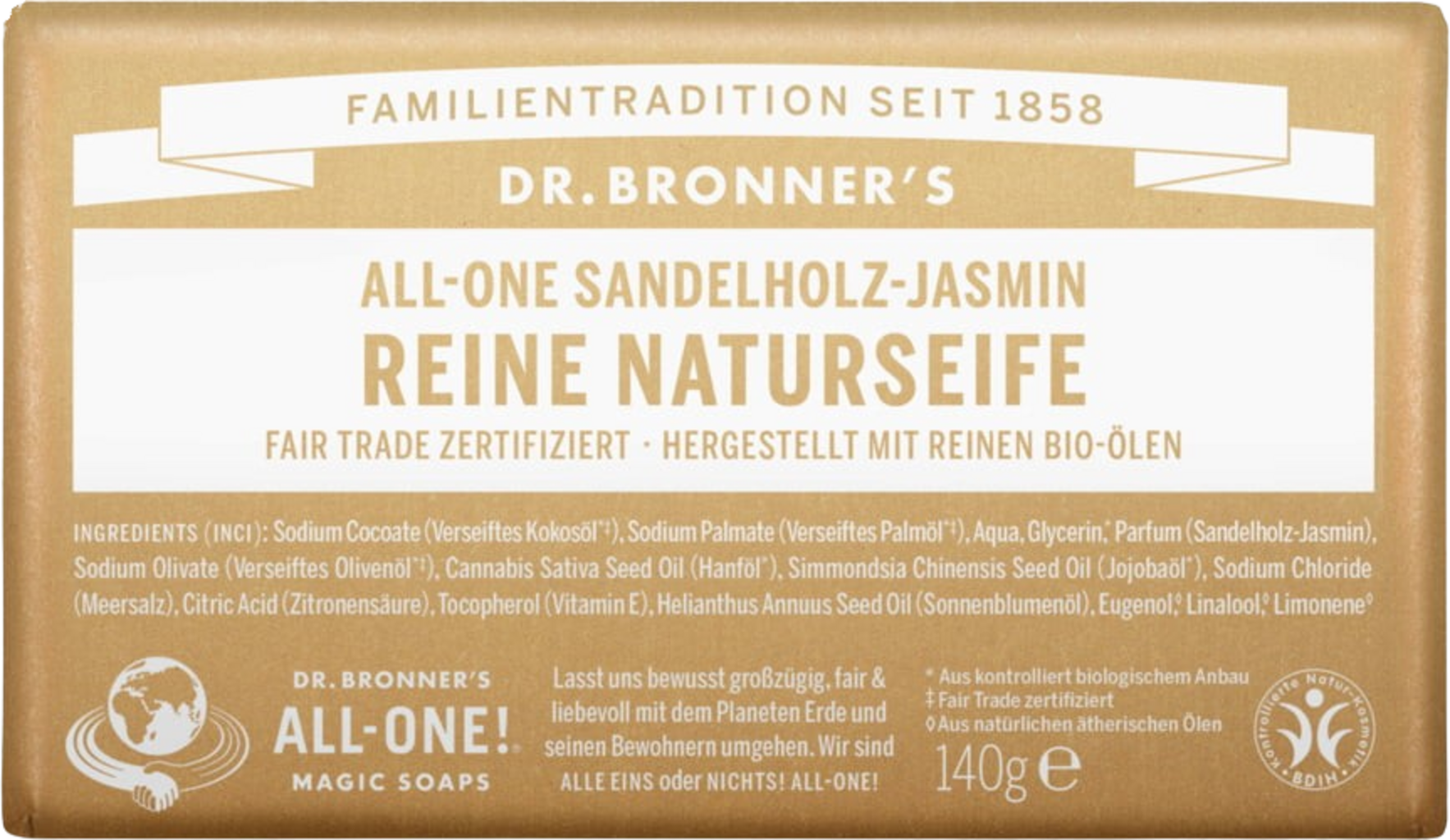 English reviews written for Dr. Bronner's Jasmine Sandalwood Bar Soap